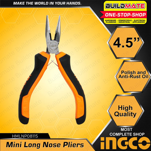Buildmate Online DepotINGCO Mini Long Nose Pliers 4.5" (115mm) HMLNP08115 •BUILDMATE• HT2 100% ORIGINAL / AUTHENTIC ✔️HEAVY DUTY • HIGH QUALITY PRODUCT ✔️AVAILABLE • RE...