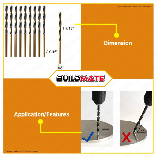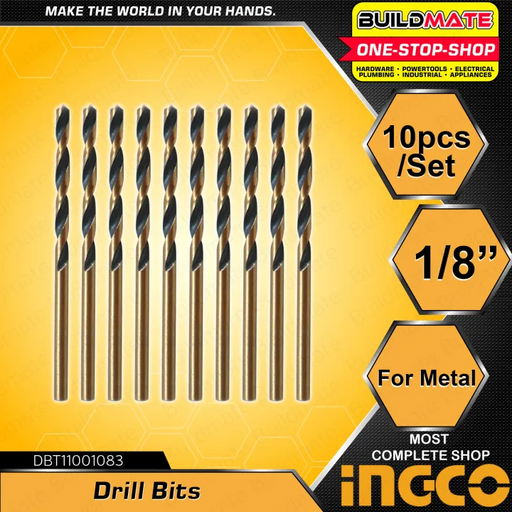 Buildmate Online DepotINGCO 10PCS Cobalt HSS Drill Bit 1/8" (3.2mm) DBT11001083 1 PACK •BUILDMATE• IHTSPECIFICATIONS: Model: DBT11001083 HSS 3.2mm 1/8" 10pcs/pack High ...