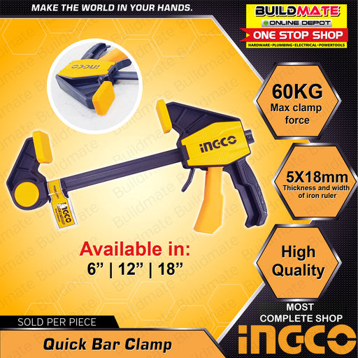 INGCO Original Hand Quick Release Bar Clamp 6" 12" 18" SOLD PER PIECE •BUILDMATE• IHT