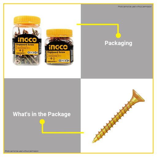 Buildmate Online DepotBUILDMATE Ingco Chipboard Screw Yellow Zinc Plated Finish Flat Head Pozi Drive Woodworking Screws SOLD PER BOTTLE - IHT AVAILABLE IN:►ST3.5x25 - HW...