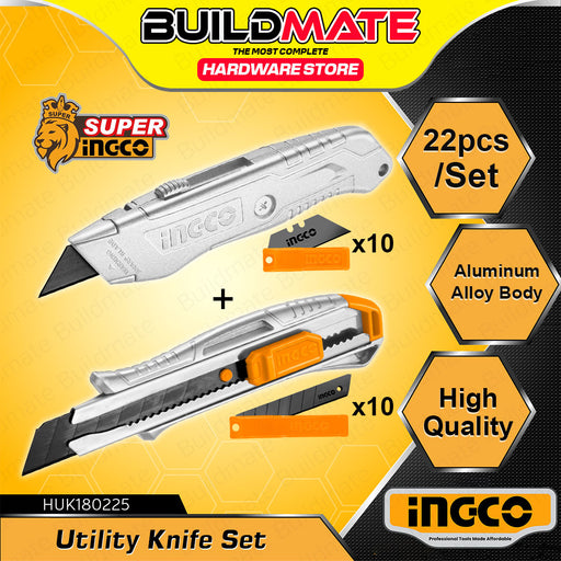 Buildmate Online DepotBUILDMATE Ingco 22pcs Utility Knife Set Box Cutter Retractable Multi-Purpose Craft Knife Kit HUK180225 - IHT SPECIFICATION:►Model: HUK180225►Quanti...