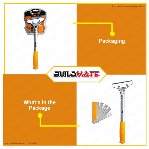 Buildmate Online DepotINGCO 310mm Metal Scraper Aluminum Handle with 5PCS SK5 Blades Zinc Alloy HGS3201 BUILDMATE• IHT SPECIFICATIONS: ►Length: 310mm ►Material: Aluminu...