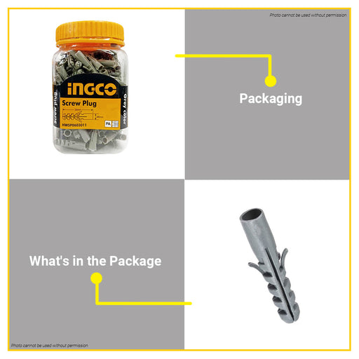 INGCO Screw Plug 6 x 30mm | 8 x 40mm | 10 x 50mm SOLD PER BOTTLE •BUILDMATE• HT2