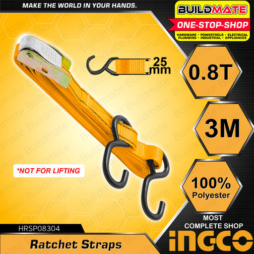 Buildmate Online DepotINGCO 0.8T Ratchet Straps 3M / 4.5M Ratchet Tie Down Straps Belt Safety Lock - IHTAVAILABLE IN:►3M HRSP08304►4.5M HRSP08453SPECIFICATIONS:►Model:...