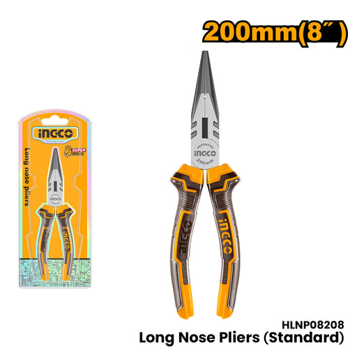 BUILDMATE Ingco 8" Long Nose Pliers (Standard) Needle Snipe Nose Wire Plier Repair Hand Tools HLNP08208 - IHT