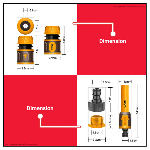 Buildmate Online DepotINGCO 5PCS Twist Nozzle Set HHCS05122 •BUILDMATE• IHTSPECIFICATIONS:►1pc 1/2" Plastic Hose Quick Connector with Water Stop►1pc 1/2" Plastic Hose Qu...