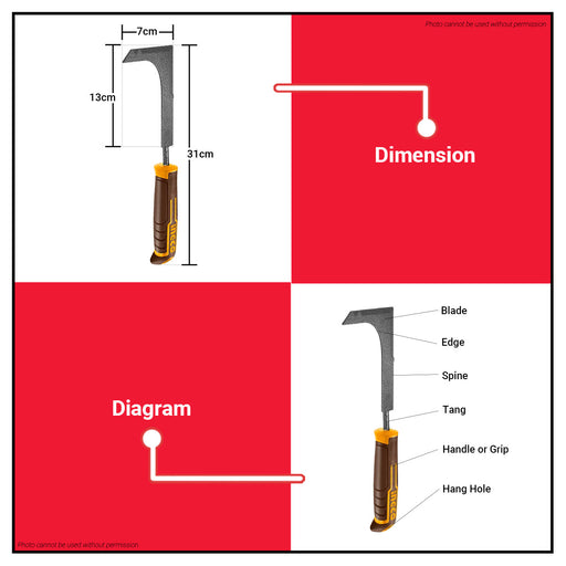 Buildmate Online DepotINGCO Carbon Steel Grass Weed Knife with Carbon Steel Handle 310mm HWK1008 •BUILDMATE• IHTSPECIFICATIONS:►Length: 310mm►Unique design patent handle...