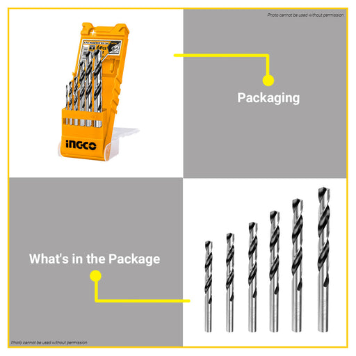 BUILDMATE Ingco 6PCS/SET Metal Drill Bits Set 2mm-8mm HSS Twist Drill Bit Used for Drilling Work AKD1055 - IHT