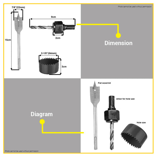 Buildmate Online DepotBUILDMATE Ingco 3pcs Hole Saw Lock Installation Kit Set Hole Cutter AKHS302 - IHTSPECIFICATION:►Model: AKHS302►With 1pc Carbon Steel Hole Saw:►-Dia...