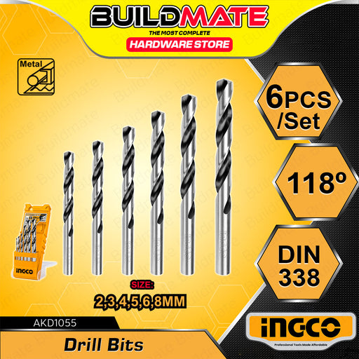 Buildmate Online DepotBUILDMATE Ingco 6PCS/SET Metal Drill Bits Set 2mm-8mm HSS Twist Drill Bit Used for Drilling Work AKD1055 - IHTSPECIFICATION:►Model: AKD1055►6pcs Me...