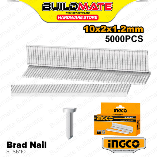 Buildmate Online DepotBUILDMATE Ingco 5000PCS/BOX Brad Nail Staple for Air Brad Nailer 10x2x1.2mm (Suitable For HSG1405 & HSG1406) STS6110 - IHT SPECIFICATION:►Mode...