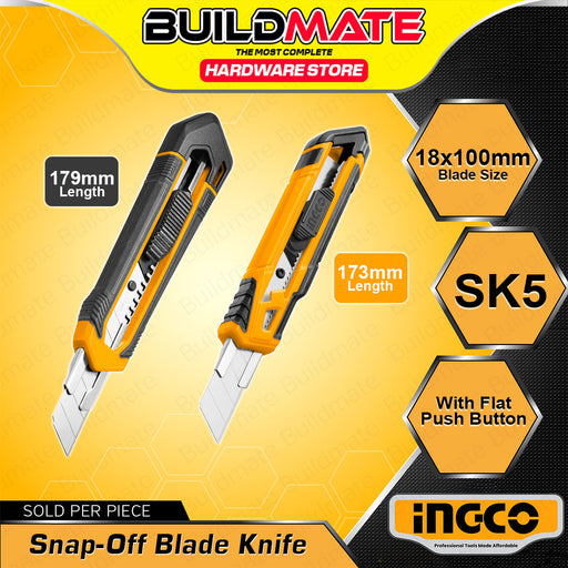 Buildmate Online DepotBUILDMATE Ingco Snap-Off Blade Knife 18mm x 100mm SK5 Heavy Duty Blades Handy Utility Knife Cutter Stainless Steel Retractable Razor Blade Knife To...