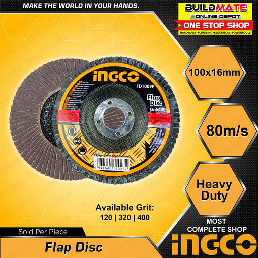 Buildmate Online DepotINGCO Flap Disc GRIT 120 | 320 | 400 SOLD PER PIECE •BUILDMATE• IHT AVAILABLE IN: ►GRIT 120 ►GRIT 320 ►GRIT 400 SPECIFICATIONS: ►80m/s ►100 x 16mm