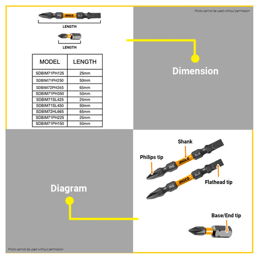 Buildmate Online DepotBUILDMATE Ingco 2PCS/SET Impact Screwdriver Bits 25mm - 65mm Black Surface with Magnet Phillips / Slotted (Flat) Impact Driver Screw Bits - IHT AV...