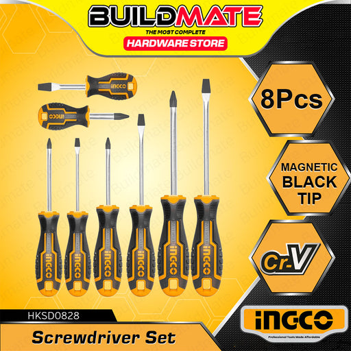 BUILDMATE Ingco 8pcs Screwdriver Set Cr-V Flat & Phillips Screw Driver DIY Hand Repair Tool Kit HKSD0828 - IHT