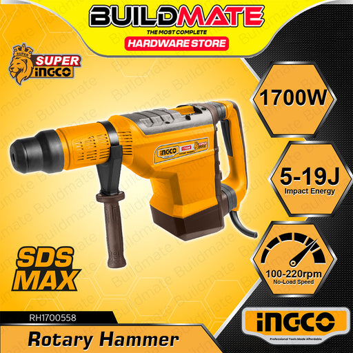 Buildmate Online DepotBUILDMATE Ingco Electric Rotary Hammer Drill 1500W / 1700W SDS Max Chuck Chipping Gun Jack Drilling Machine Demolition Concrete Breaker Hammer For ...