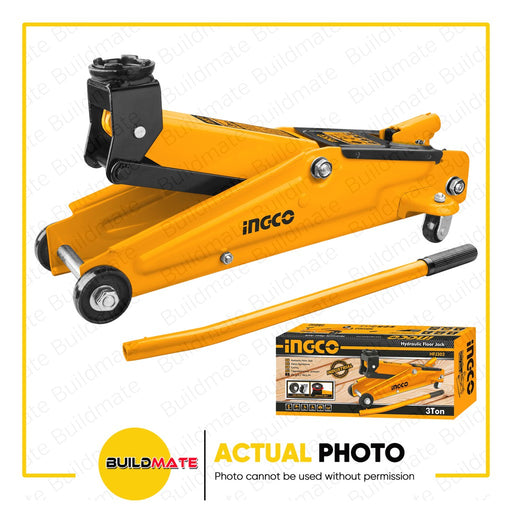 Buildmate Online DepotINGCO 3 TONS Hydraulic Floor Jack HFJ302 •BUILDMATE• SPECIFICATIONS: ►3TONS ►Min. height: 135mm ►Max. height: 410mm ►Travel: 275mm ►Net weight:16kg...
