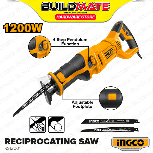 BUILDMATE Ingco Reciprocating Saw 750W / 1200W Electric Wood Metal Cutting Machine Power Tool RS8008 / RS12001 - IPT