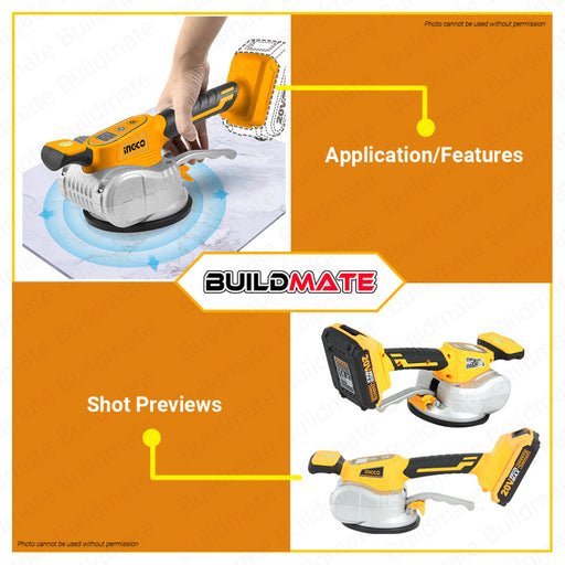 Buildmate Online DepotBUILDMATE Ingco Lithium-Ion Cordless Tile Vibration 20V Vibrator Leveling Tool with Adjustable Suction Cup Floor Plaster Machine Brick Wall Install...