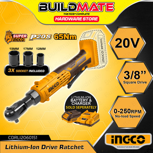 BUILDMATE Ingco Lithium-Ion Cordless Drive Ratchet 20V High Torque Motor Rechargeable Ratchet Automotive Repair Power Tool - ICPT
