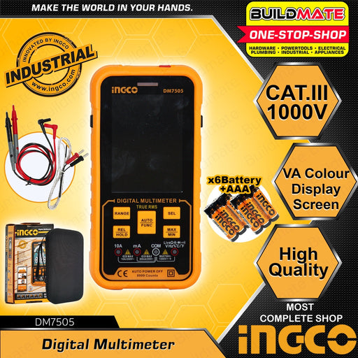 Buildmate Online DepotINGCO Digital Multimeter Tester DM7505 100% ORIGINAL / AUTHENTIC •BUILDMATE• IPT SPECIFICATIONS: ►Model: DM7505 ►CAT III: 1000V ►VA Colour Displa...