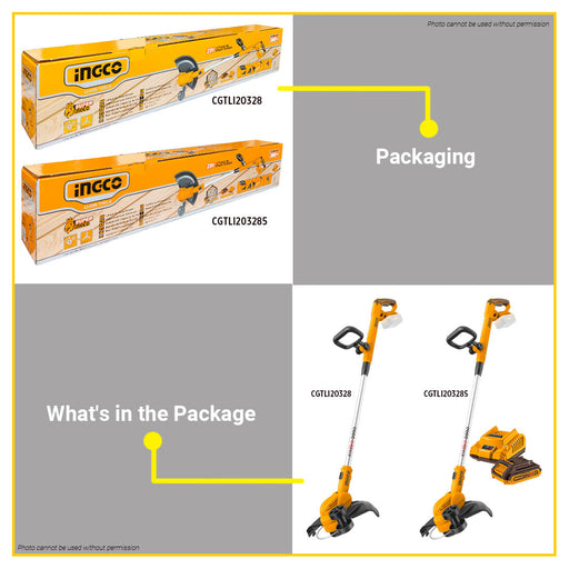 Buildmate Online DepotBUILDMATE Ingco Lithium-Ion Cordless 20V Grass Trimmer 8200rpm Rechargeable Garden Weed Eater String Grass Cutter - ICPT AVAILABLE IN: ►BARE UNIT O...