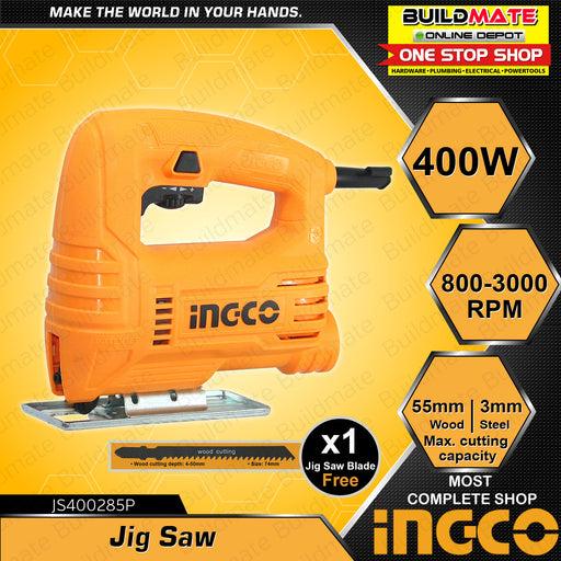 Buildmate Online DepotINGCO Jigsaw Jig Saw 400W JS400285P + 4 PCS F CLAMP 50x200mm For Wood & Metal 100% ORIGINAL / AUTHENTIC •BUILDMATE• IPT 100% ORIGINAL / AUTHEN...
