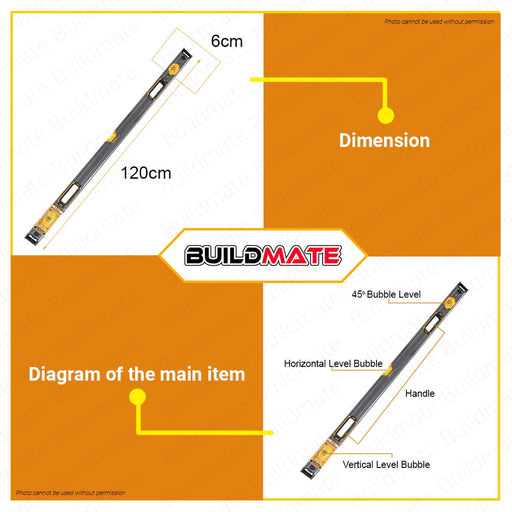 Buildmate Online DepotINGCO 120CM Spirit Level With Powerful Magnets High Quality Bubble Level Box Spirit Level HSL68120 | 100% ORIGINAL / AUTHENTIC •BUILDMATE• IHT SP...