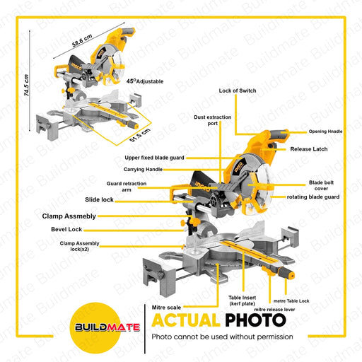 Buildmate Online DepotBUILDMATE Ingco 1200W Electric Mitre Saw and Table Saw Aluminum Cutter Miter Cutting Machine Power Tool MT2S18002 - IPTSPECIFICATION:►Model: MT2S18...