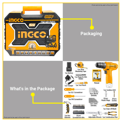 Buildmate Online DepotBUILDMATE Ingco Household Tools Set 81pcs / 89pcs Cordless Drill with Hand Tool Kit Combo Mechanic Home Repair Tool Set - ICPT AVAILABLE IN:►81pcs...