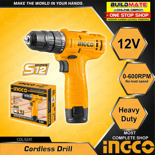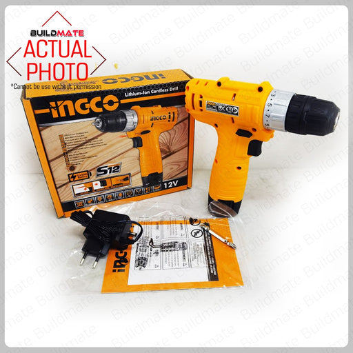 Buildmate Online DepotINGCO Lithium Ion Cordless Drill 12V CDLI1241 +FREE DRILLBIT SET AKDB1065 •BUILDMATE• SPECIFICATIONS: ►Voltage:12V ►No-load speed:0-600rpm ►Max.t...