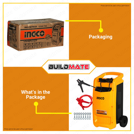 BUILDMATE Ingco Battery Charger 450A Fast Charger Automotive Charger Battery Maintainer Stable Power Supply Industrial Car Trolley Battery Charger for Automotive Charger Tools CB70035 • IPT