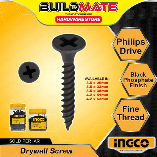 INGCO PHILIP Gypsum Wood & Drywall Black Screw in a JAR •BUILDMATE• IHT