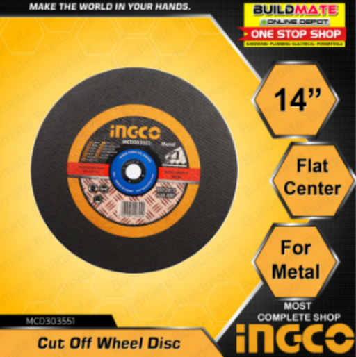 Buildmate Online DepotINGCO Cut Off Wheel Cutting Disc For Metal MCD303551 •BUILDMATE• SPECIFICATIONS: ►355mm(14")X3.0mm ►Flat centre