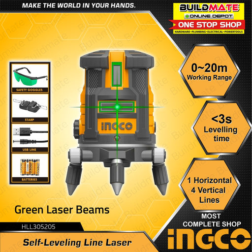 INGCO Self-Leveling Line Laser Level Green Laser Beams HLL305205 •BUILDMATE• IPT