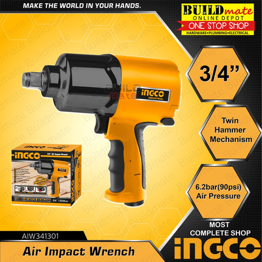INGCO 3/4" Air Impact Wrench 1355N.m Twin Hammer AIW341301 •BUILDMATE• IPT