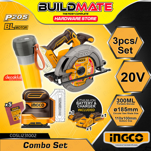 Buildmate Online DepotBUILDMATE Ingco 3PCS 20V Lithium-Ion Cordless Circular Saw and Sheet Sander with Portable Blender Combo Kit COSLI231002 - IPXSPECIFICATION:►Model: ...