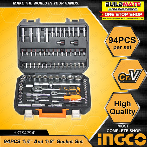 Buildmate Online DepotINGCO 94 PCS Socket Set with Hard Case 1/4" and 1/2" HKTS42941 •BUILDMATE• HT2 100% ORIGINAL / AUTHENTIC ✔️HEAVY DUTY • HIGH QUALITY PRODUCT ✔️AVA...