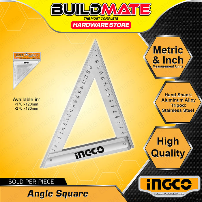 BUILDMATE Ingco Angle Square 170x120mm / 270x1890mm Carpenter Roofing Right Angle Marking Framing Tri-Square - IHT