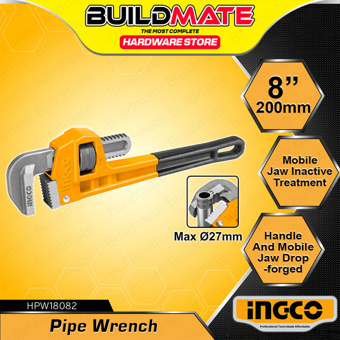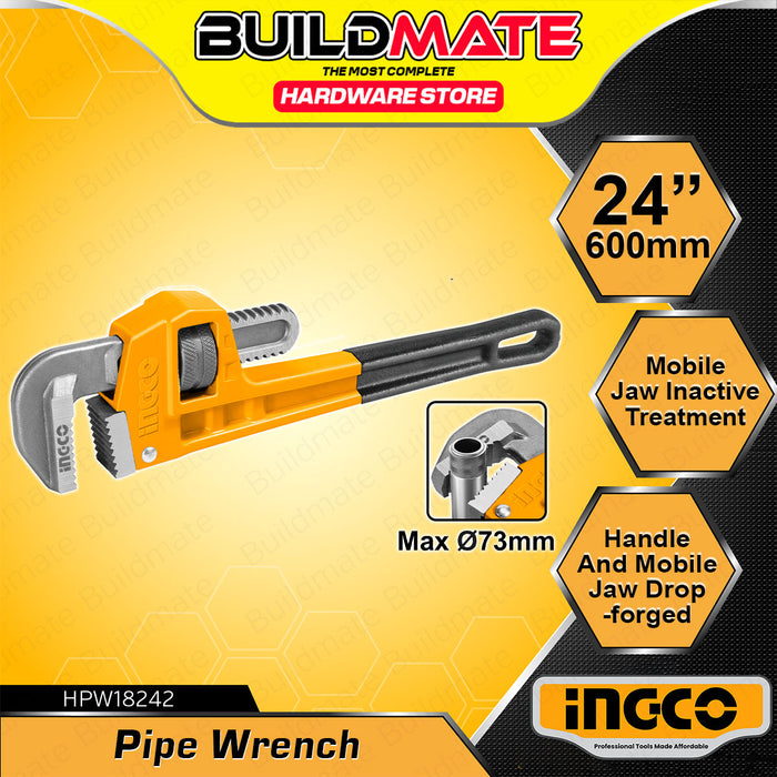 BUILDMATE Ingco Pipe Wrench 8" - 24" Inch Carbon Steel for Plumbing Piping Adjustable Wrench Plumber - IHT