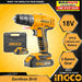FREE GIFT! INGCO Cordless Drill Lithium Ion 18V CDLI1801 +FREE HKTH10258 TOOL SET •BUILDMATE•