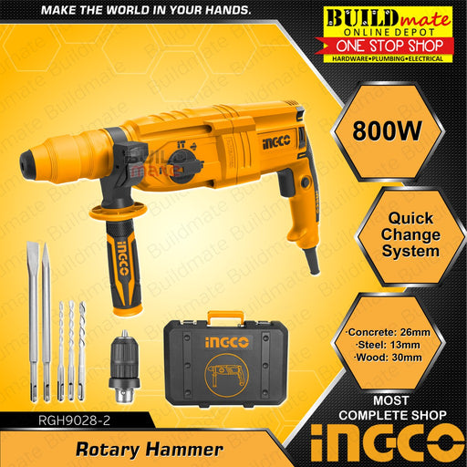 INGCO Rotary Hammer SDS Plus System 800W RGH9028-2 +FREE TAPEMEASURE & GLOVES •BUILDMATE• IPT