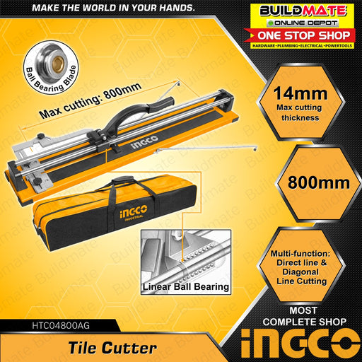 Buildmate Online DepotINGCO Tile Cutter 800mm HTC04800AG •BUILDMATE• IHT SPECIFICATIONS: ►800mm Tile cutter ►With 1 pc bag ►Easy to carry ►Max cutting length: 800mm ►Max...