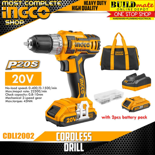[SALE] INGCO Li-Ion Cordless Drill 20V 47PCS Accessories CDLI2002 POWERSHARE | 100% ORIGINAL & AUTHENTIC •BUILDMATE• ICPT