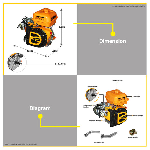 Buildmate Online DepotBUILDMATE Ingco 4-Sroke 18.2HP Industrial Marine Speed Gasoline Engine Air-Cooled Recoil GEMR1902P • IIT SPECIFICATIONS: ►Model: GEMR1902P ►Max. O...