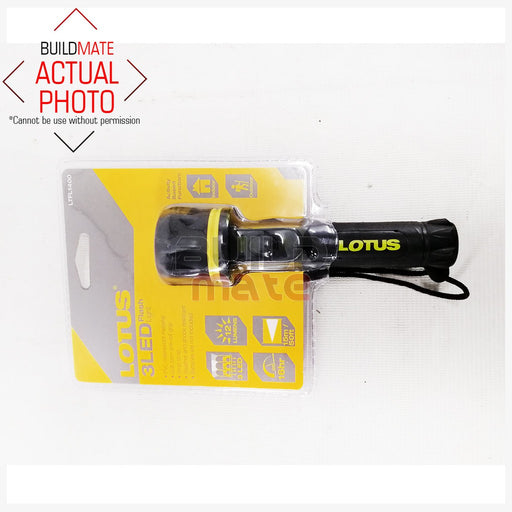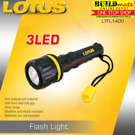 LOTUS 3LED Flash Light PVC Waterproof LTFL1400 •BUILDMATE• LHT SPECIFICATIONS: ►PVC Waterproof Material ►Soft Form Anti Roll Grip ►With Wrist Wra...