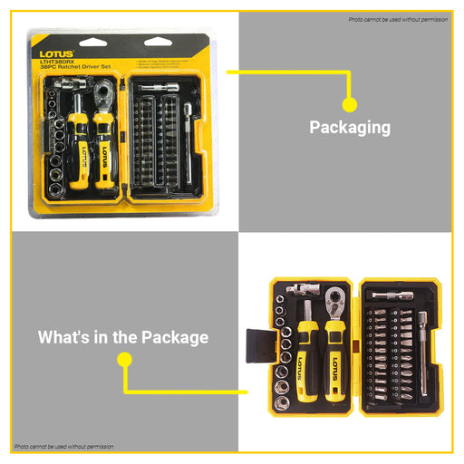 LOTUS 38 PCS Ratchet Driver Socket and Bit Set LTHT38DRX •BUILDMATE•