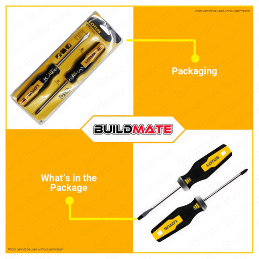 LOTUS 2pcs Screwdriver Set Professional Phillips & Slotted Screw Driver LTHTSS200 •BUILDMATE• LHT