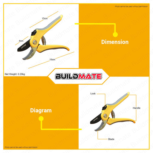 Buildmate Online DepotLOTUS Bypass Pruner Plant Plantita Garden 8" LTGT8BPX •BUILDMATE• LHT SPECIFICATIONS: ►Heat Treated blade stays sharper longer ►High carbon steel...