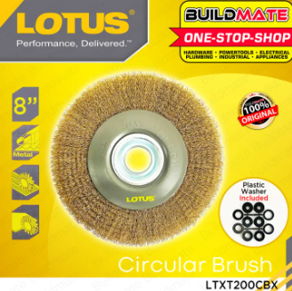 Buildmate Online DepotLOTUS 8" Metal Circular Brush LTXT200CBX •BUILDMATE• SPECIFICATIONS: ►Model: LTXT200CBX ►Metal brush ►Circular hole diameter: 32mm (3/4") ►Wire di...